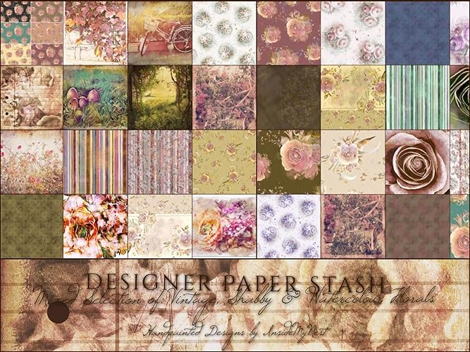 Vintage Designer Paper Stash Shabby Chic Watercolor Florals Card Making Scrapbook Journal Backgrounds Diecuts Stickers