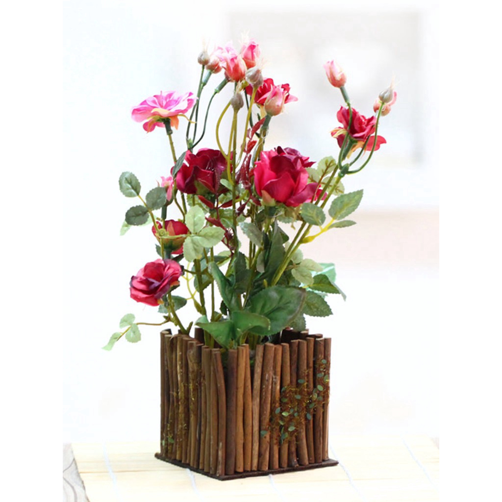 Bunga Plastik Artificial Palsu Dekorasl Shabby Chic Rose Set Bonsai Kecil
