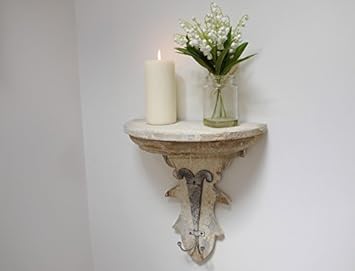 Wooden Distressed Style Shabby Chic Wall Shelf Sconce With Hooks